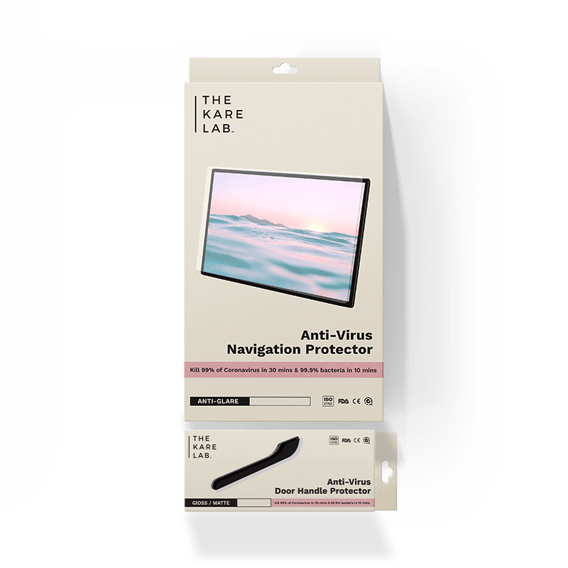 Antiviral, antimicrobial Tesla Tesla Navigation Screen (Anti-Glare) + Door Handle Protector (Gloss) specifically designed for Tesla Models.