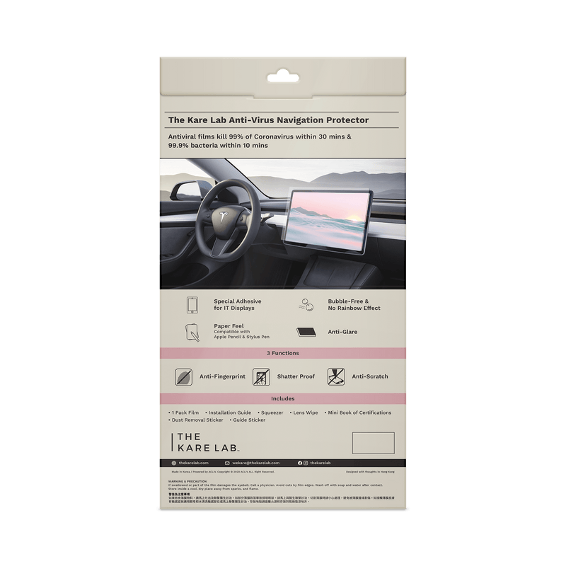 Antiviral, antimicrobial Tesla Navigation Screen Protector Anti-Glare specifically designed for Tesla Models.